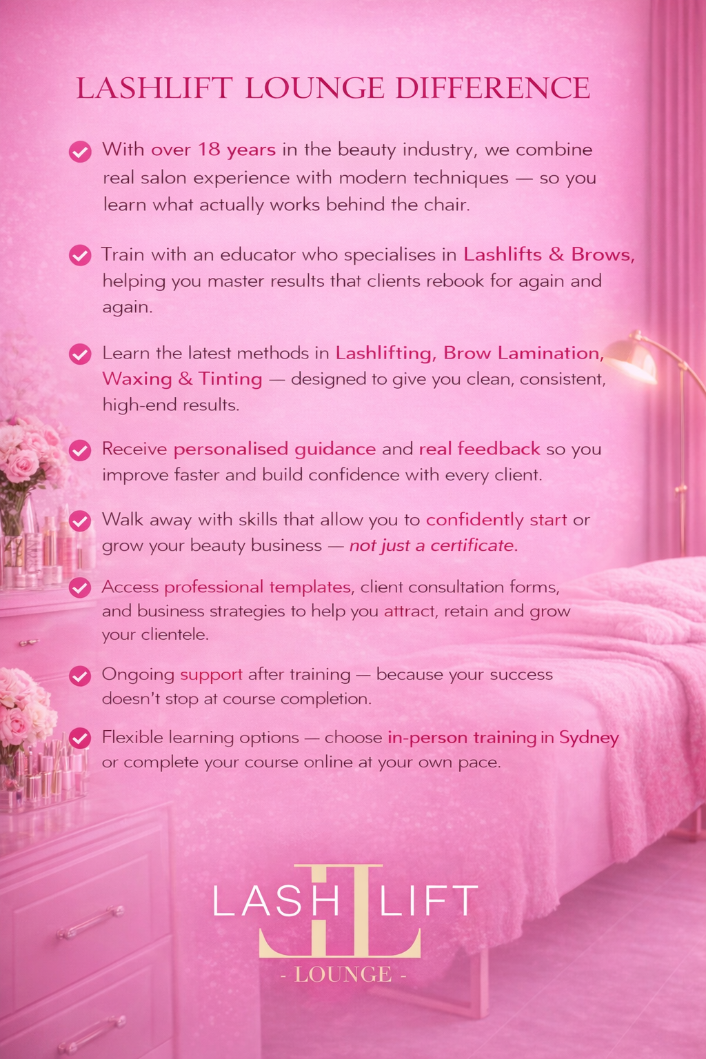 I recently completed the Online Lash Lift & Tint Course and I honestly couldn’t be happier. From my very first interaction with Fatima through to finishing the course, she was so kind, supportive, and incredibly helpful.
